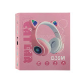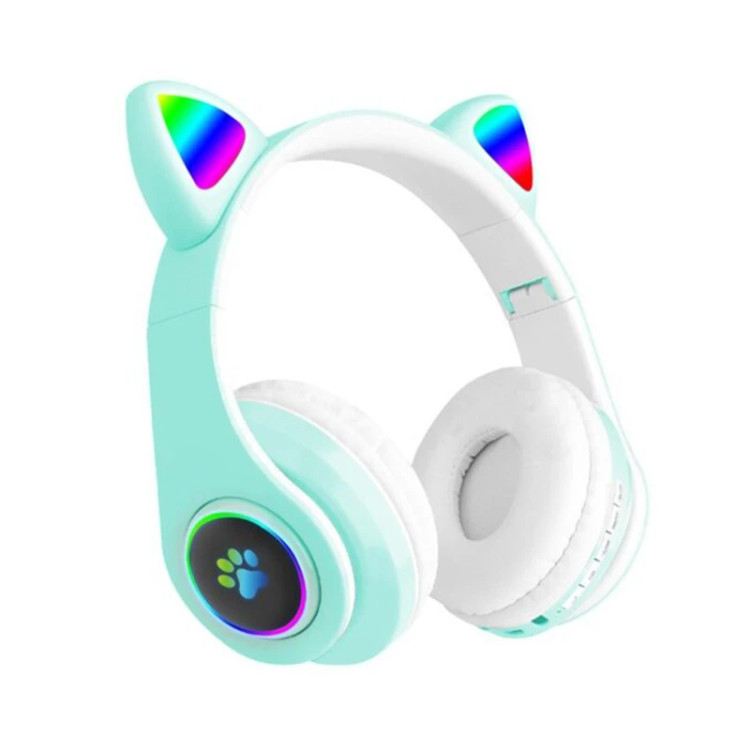 هدست بلوتوث گوش گربه ای مدل B39M با طراحی فانتزی و زیبا در رنگ بندی متنوع مشکی، سفید، آبی، صورتی، سبز، زرد مناسب برای کودکان و یک هدیه عالی که برای لذت بردن از موسیقی، مکالمه، تماشای فیلم و … است. هدست بلوتوث گوش گربه ای مدل B39M با ساختار زیبا و ظریف ساخته شده از مواد پلاستیکی عالی و با کیفیت دارای دو گوش گربه ای چراغ دار و دو بالشتک چرمی بسیار نرم با وزن بسیار سبک و ارگونومی با دسته های تاشو قابلیت حمل آسان را به شما داده و در زمان استفاده کمترین خستگی و یا آسیب را به گوش وارد می کند. این هدفون وایرلس از طریق بلوتوث ورژن 5.0 به گوشی تلفن و تبلت شما متصل و یا از طریق درگاه جک 3.5 میلیمتری و کابل AUX به انواع رایانه، لبتاپ و MP3 پلیر ها بصورت سیم دار متصل میشود. راه دیگر برای پخش موسیقی از طریق کارت خوان بودن آن میباشد و شما می توانید انواع موزیک های مورد علاقه خود را بر روی رم میکرو ریخته و از طریق شیار که بر روی سرگوش ها جای گذاری شده به راحتی از موزیک خود لذت ببرید. بر روی یکی از سر گوشها یک پنل مدیریت جهت خاموش و روشن کردن دستگاه مشترک با پلی و مکث آهنگ،کلید Call، دو دکمه جهت عقب و جلو و یا کم و زیاد کردن آهنگ ها و کلید MP3 تعبیه شده و در کنار همه ی این ها وجود یک میکروفن که امکان مکالمه را فراهم میکنند. باتری تعبیه شده در این هدفن بیسیم مدل CATEAR B39M از نوع لیتیوم پلیمری با خاصیت شارژ پذیری مجدد با ظرفیت 400 میلی امپر که با هر بار شارژ 2.5 ساعته میتوان در حدود 4 ساعت به موسیقی و یا مکالمه پرداخت؛ اگر هدفن در حالت استندبای باشد تا 100 ساعت شارژ را در خود نگه دارد. از مشخصات دیگر این مدل با محدوده برد تا 15 متر، پشتیبانی از استاندارد های صوتی مثل A2DP1.2/HFP1.6/AVRCP1.4/HSP و قابلیت پخش صدای استریو با بیس قوی را ارائه میدهد. از اقلام همراه این محصول یک کابل میکرو USB جهت شارژ آن است..