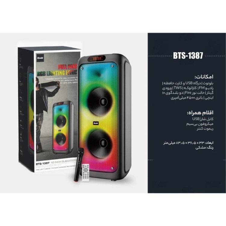 اقلام همراه بلندگو ریموت کنترل / میکروفون بیسیم / کابل شارژ سوزنی / دفترچه راهنما